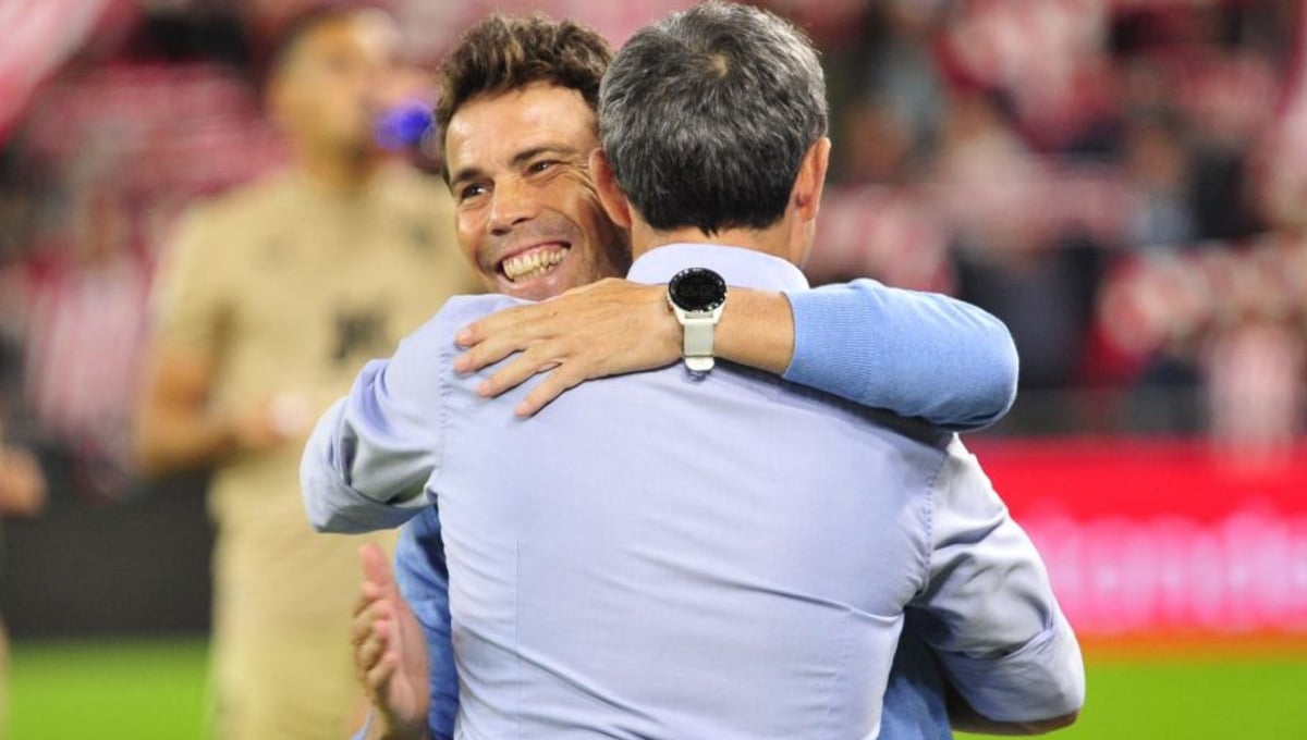 Rubi abrazando a Ernesto Valverde antes del partido en San MamésLaLiga
