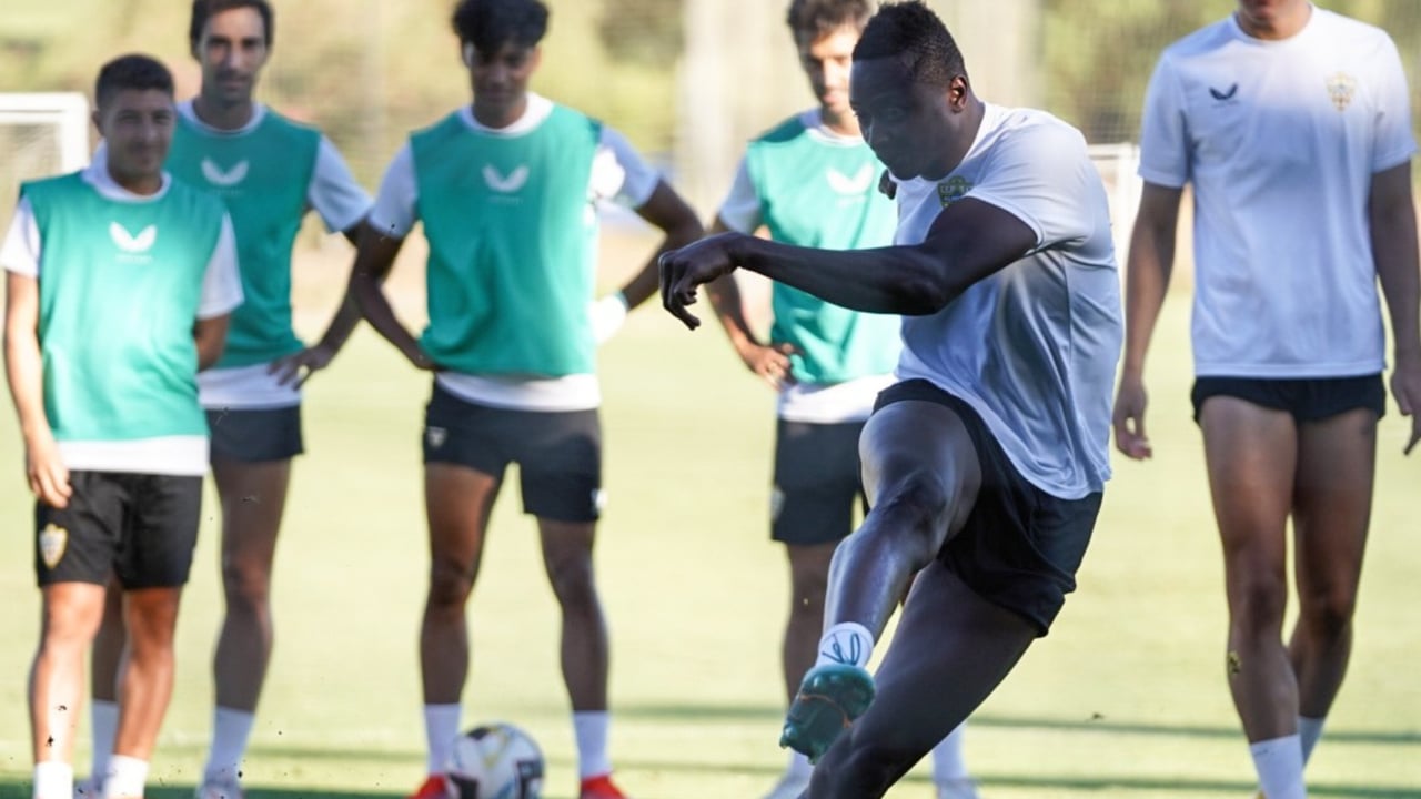 Umar Sadiq en un entrenamiento con el AlmeríaUDA