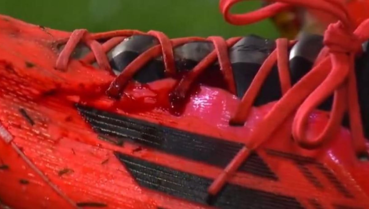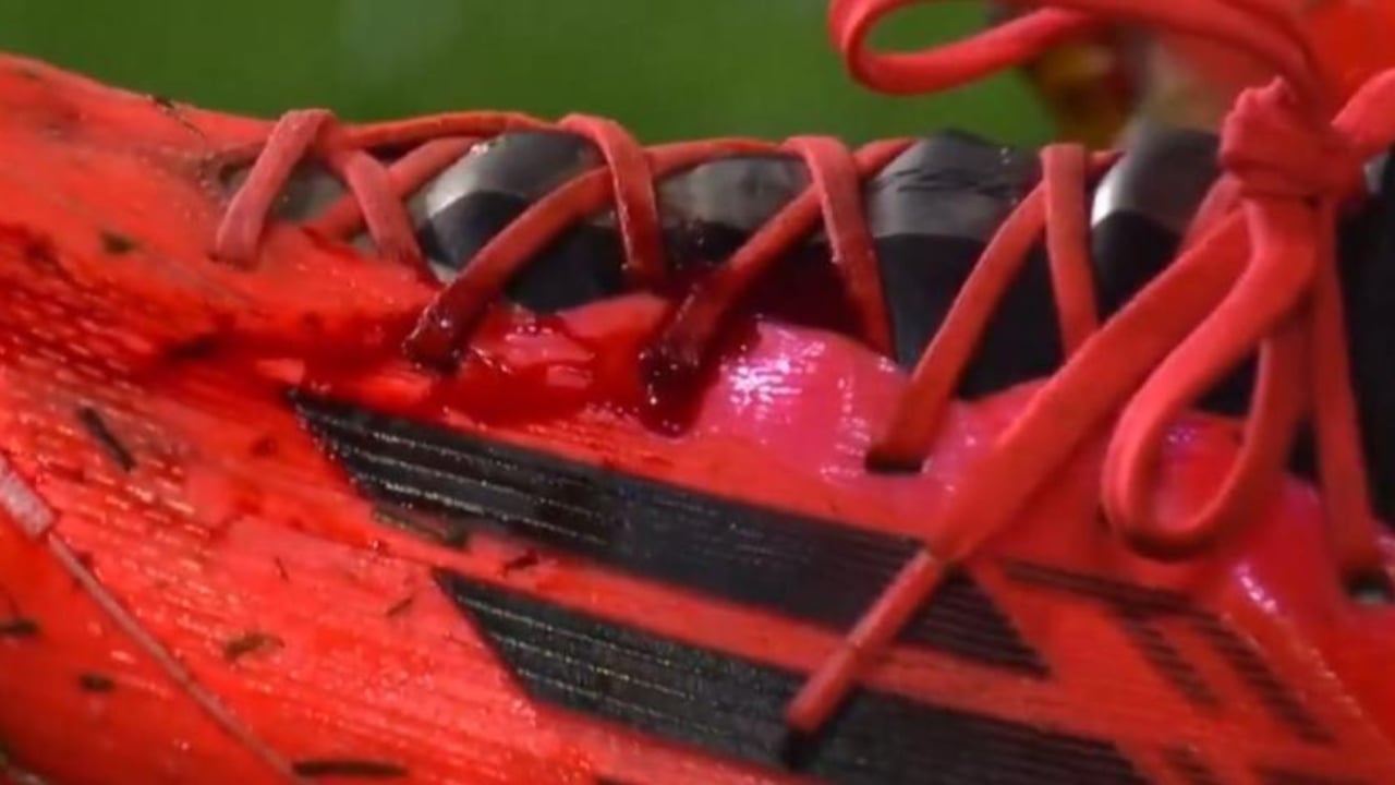 Las cámaras de DAZN captaron cómo quedó la bota del capitán che después del fuerte pisotón de José Ángel Carmona, aunque pudo seguir hasta la segunda parte cuando fue sustituido
