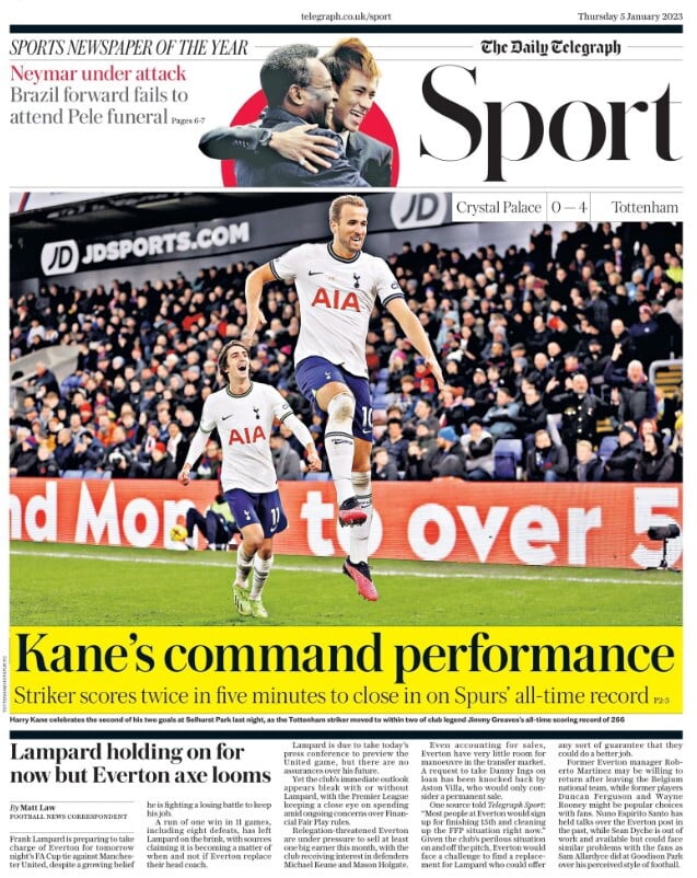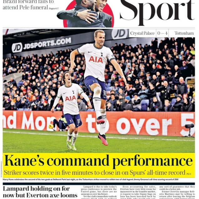El Tottenham se impuso por 0-4 al Crystal Palace este pasado miércoles gracias a un doblete de Kane en cinco minutos en el que el exsevillilsta Bryan Gil resultó también fundamental, participando en tres de los cuatro goles del conjunto ‘Spur’. Un triunfo en Selhurst Park que ayuda al Tottenham a no descolgarse de la lucha por las posiciones de Liga de Campeones. Primer triunfo del Tottenham tras el parón por el Mundial, después de haber empatado contra el Brentford y de haber perdido ante el Aston Villa.