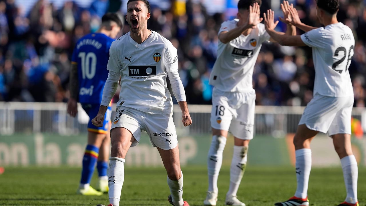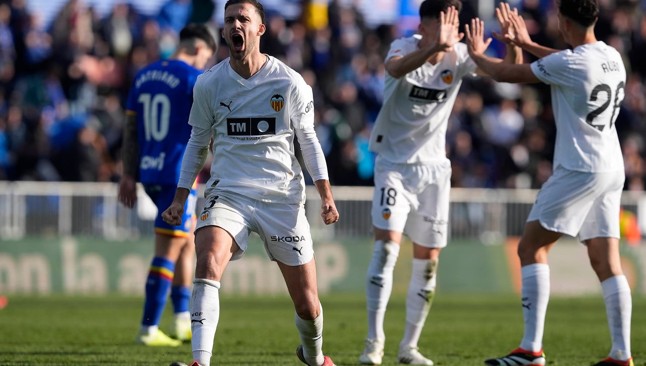 Copete celebra el triunfo del Valencia en el Coliseum de Getafe.Cordon Press