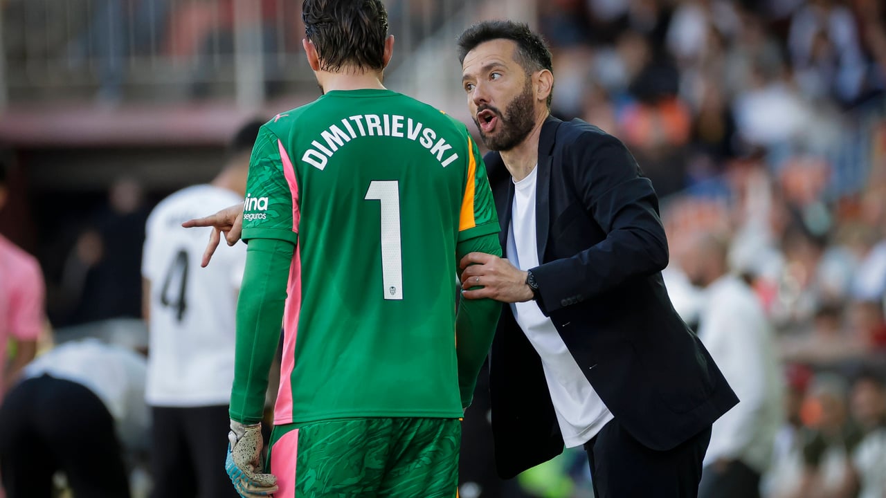 Corberán da unas indicaciones a Dimitrievski.Imago.