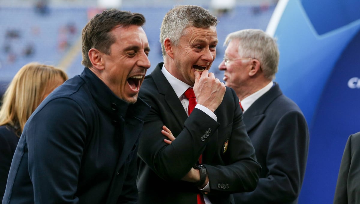 Gary Neville junto a Solskjaer en una entrevista para la televisión inglesaCordon Press
