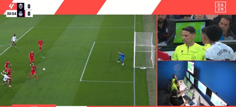 La jugada que pudo cambiar el partido ocurrió en el minuto 28. El árbitro del encuentro, el madrileño Ortiz Arias decretó penalti por mano de Mascarell dentro del área del Mallorca. Y cuando todo apuntaba a que se lanzaría, le avisaron desde la sala VOR. Fue a revisarlo al VAR y corrigió su decisión tras ver cómo el esférico le había golpeado en la mano que tenía pegada en el pecho.