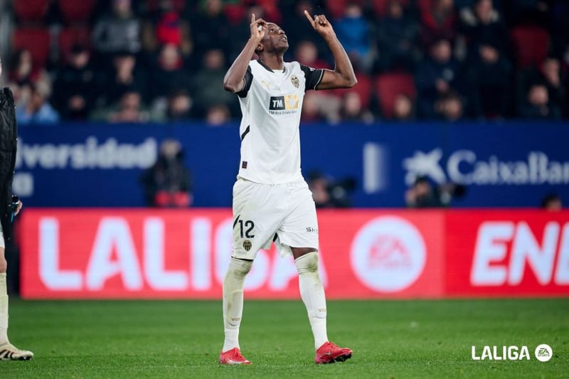 Sadiq Umar está en su mejor momento de forma desde que llegó al Valencia y de toda la temporada. El delantero nigeriano, autor de un doblete en El Sadar, el segundo de ellos un auténtico golazo, suma ya tres tantos en LaLiga (cuatro si contamos la Copa del Rey) con el Valencia en apenas 275 minutos disputados, lo que le sitúan como el delantero como mejor media goleadora ya no solo de la plantilla che y por delante también de los que fueron sus compañeros en la Real Sociedad.