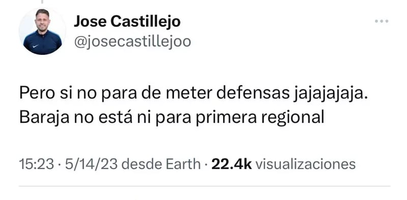 La relación entre Castillejo y el entrenador Rubén Baraja no ha sido la mejor, viéndose agravada por unas publicaciones de hermano del futbolista contra el técnico en redes sociales. "Baraja no está ni para Primera Regional", escribió en X (antiguo Twitter).