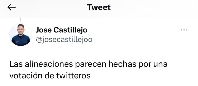 Más tarde, volvió a dejar constancia de su malestar con los planteamientos de Rubén Baraja comentando: "Las alineaciones parecen hechas por una votación de tuiteros".