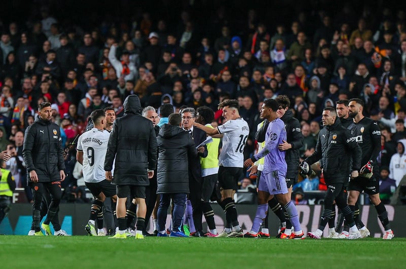 El tiempo añadido del Valencia-Real Madrid tuvo prácticamente de todo y polémica de sobra. El partido acabó con empate a dos pero bien pudo ser 3-2, de haberse lanzado el penalti señalado en primera instancia por Gil Manzano y acabado en gol, e incluso 2-3 si el colegiado extremeño no llega a señalar el final del partido mientras el balón volaba directo a la cabeza de Bellingham y terminaba entrando en la portería de Mamardashvili.