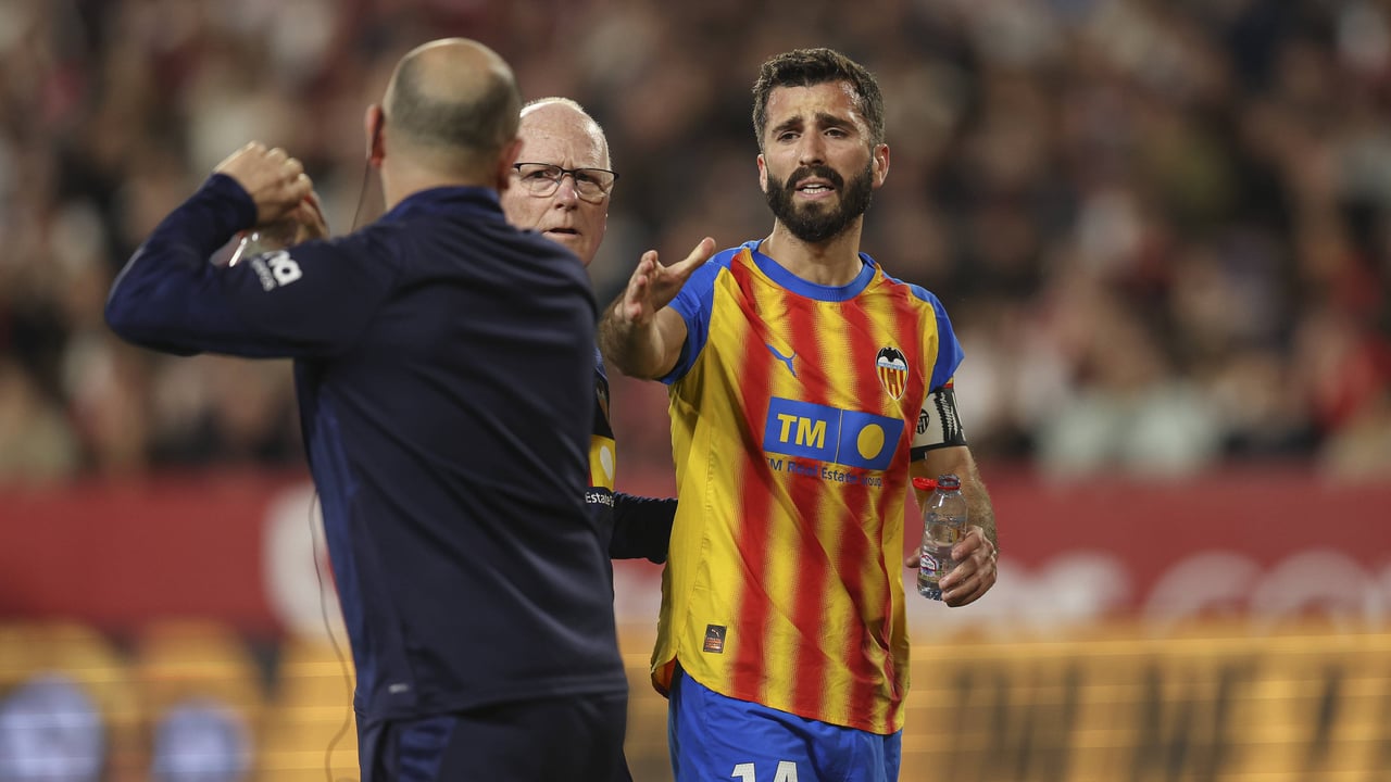El capitán del Valencia CF tuvo que dejar de jugar el partido contra el Sevilla FC en la primera parte después de recibir dos golpes seguidos en la cabeza que le hicieron por momentos sufrir algún que otro mareo. El lateral izquierdo fue trasladado al hospital para ser chequeado y verificar que todo estaba bien