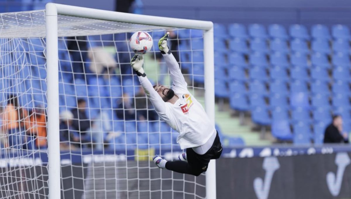 El Valencia CF acarició el bien y el mal este domingo en el Coliseum ante el Getafe CF. Pese a que todas las ocasiones más claras fueron para el cuadro local, el equipo blanquinegro se fue al descanso con 0-1 gracias a un gol de Enzo Barrenechea a la salida de un córner muy mal defendido por el equipo azulón, que antes de empatar de penalti en el 90' por medio del 'pichichi' Mauro Arambarri (cuatro goles ya) se topó dos veces con Giorgi Mamardashvili. No obstante, la gran aparición del meta georgiano llegó en el postrero minuto 95', con una espectacular doble parada ante Bertug Yildirim que hizo que el cuadro che pasase de lamentar el empate a valorar el punto rascado. Todo lo contrario generó en el vestuario del equipo local, que admite que ya estaba celebrando el gol de la victoria antes del enésimo milagro de 'San Mamardashvili', quien voló para dejarle claro a los madrileños que no había nada que celebrar.