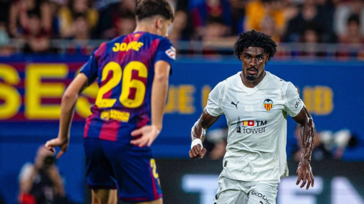 La dura derrota ante el FC Barcelona aún escuece en el Valencia. Pero si hubo alguna buena noticia que rescatar en el Estadi Johan Cruyff, esa fue sin duda la vuelta a los terrenos de juego de Thierry Correia. El portugués reapareció después de 322 días lesionado, un largo periodo de recuperación que ha incluido dos operaciones en la rodilla izquierda. Entró desde el banquillo en la segunda parte en sustitución de Diakhaby y completó los últimos 30 minutos del encuentro con normalidad, por lo que se trata de un 'fichaje' en toda regla para Carlos Corberán, que espera mucho de él.