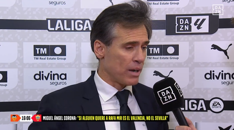 Pero el enfado de Corona fue a más con el paso de las palabras: "Si alguien ha querido a Rafa Mir es el Valencia. Ellos mismos lo han reconocido, hemos tenido dos acuerdos, en agosto y en febrero. Ellos sientan a Rafa Mir en agosto para pedirle disculpas y en febrero, tras un acuerdo verbal, mandan unas cantidades diferentes en la opción de compra y en los bonus. Luego lo reconocen cuando su presidente llama a Javier Solís y asumen que no ha sido una errata, sino que lo han cambiado y no fue un error. Y el Valencia no puede permitir eso, lo han hecho dos veces, pero tres ya no. Esto va de respeto y profesionalidad y el Valencia la ha tenido".