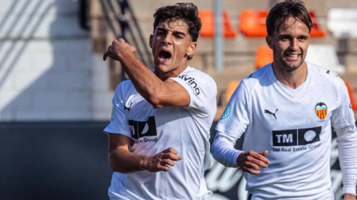 Víctor Fernández Jr. celebra un gol con el Valencia Mestalla. @vviccctor