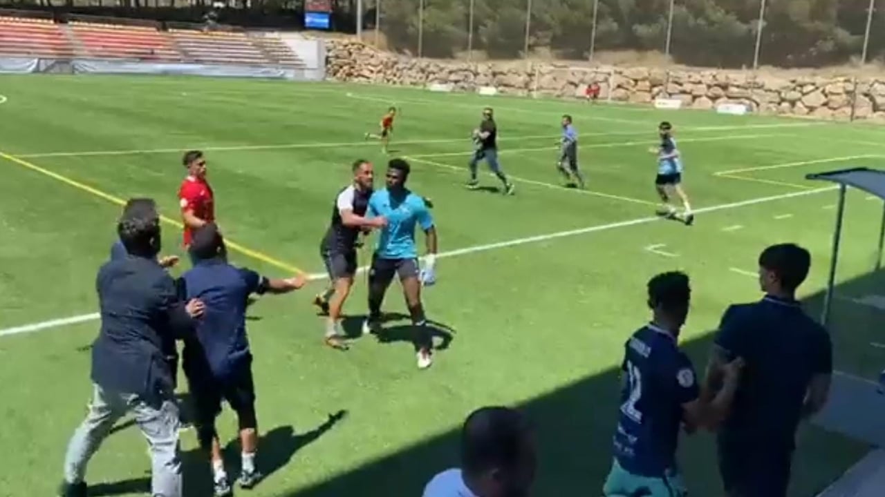 El Diocesano acababa de ganar en el campo del Estepona cuando se produce todo. Una tangana en la que se puede ver a Razak Brimah rodeado por varios futbolistas del equipo extremeño. Es en ese momento cuando el meta ghanés, que pasó por la cantera del Betis y jugó en el Tenerife o Mirandés, empezó a dar puñetazos a sus rivales. El exinternacional por su país comenzó seguidamente a perseguir a los jugadores del club de Cáceres, y estos empiezan a desaparecer de la escena mientras un miembro de su club, el Estepona, intenta sujetar a Razak para que pueda calmarse y deje atrás esa situación de 'locura transitoria'.