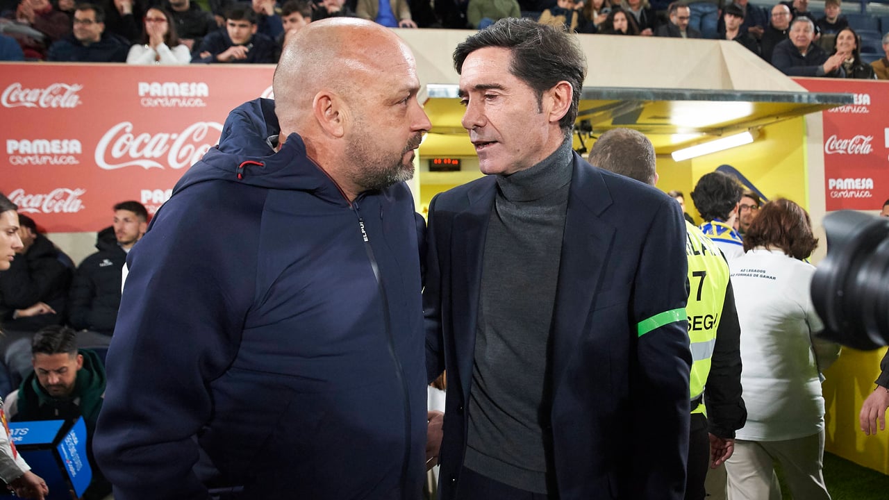 Marcelino conversa con Manolo González antes del Villarreal-Espanyol.Imago.