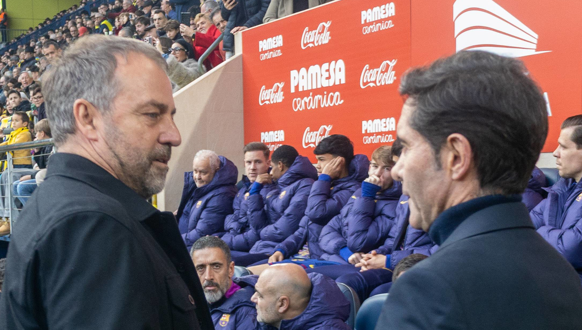 Hansi Flick y Marcelino se saludan antes de empezar el partidoCordon Press