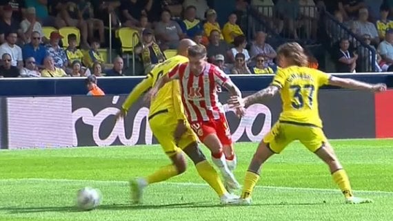 Ya al filo del descanso, se cambiaron las tornas y fue el Villarreal el que protestó una decisión arbitral a favor de su rival. Fue en el gol que adelantaba a los rojiblancos en el minuto 44. Tras un genial pase a la espalda de la zaga local, Akieme le cogió la cartera a Foyth y se plantó solo ante Jörgensen para fusilarlo y hacer el 0-1, pidiendo el público de La Cerámica fuera de juego.