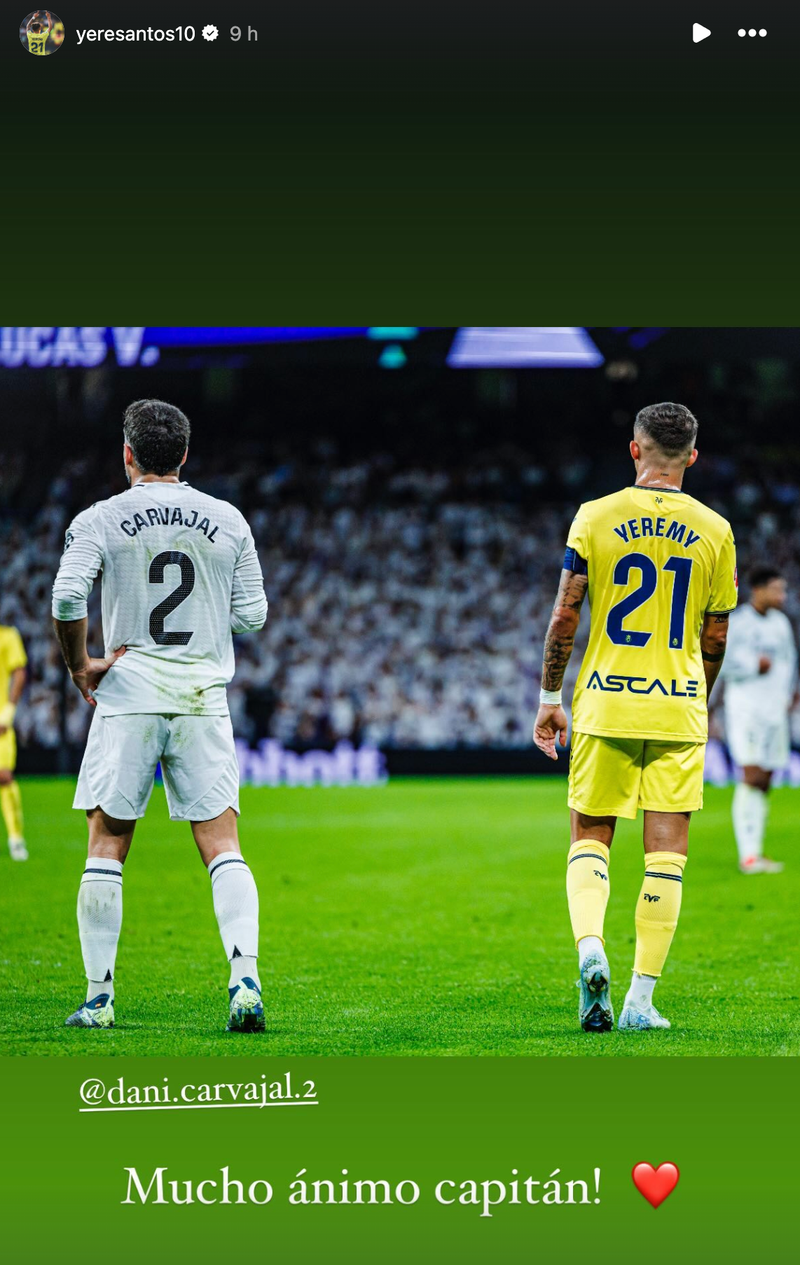 Anoche no habló, pero no por ello evitó mandar un mensaje de apoyo a toda una leyenda del fútbol español como es Dani Carvajal. A través de su cuenta de Instagram, compartió una foto de ambos juntos y escribió: "¡Mucho ánimo capitán!".