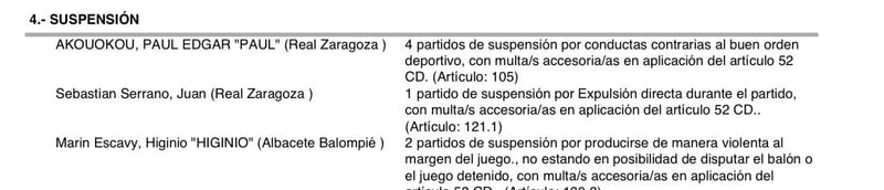 Tras esta acción, el Real Zaragoza se esperaba una dura sanción para Paul Akouokou, que recordemos, era uno de los fijos para Gabi Fernández en las 9 jornadas anteriores. La RFEF ha tardado en responder y no ha sido hasta este miércoles cuando ha dado su veredicto en relación a la posible sanción que podría acarrear la acción de Paul Akouokou.