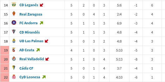 Pero si nos paramos a mirar la clasificación virtual del Real Zaragoza desde que llegó Rubén Sellés, los del Ibercaja Estadio estarían fuera de los puestos de descenso con esos 18 puntos. El Real Zaragoza seria decimosexto y dejaría por detrás a Cádiz, Huesca, Cultural Leonesa, Andorra, Real Valladolid y Mirandés. Más allá de los datos del Real Zaragoza con Rubén Sellés, la segunda vuelta también le da crédito al técnico valenciano.