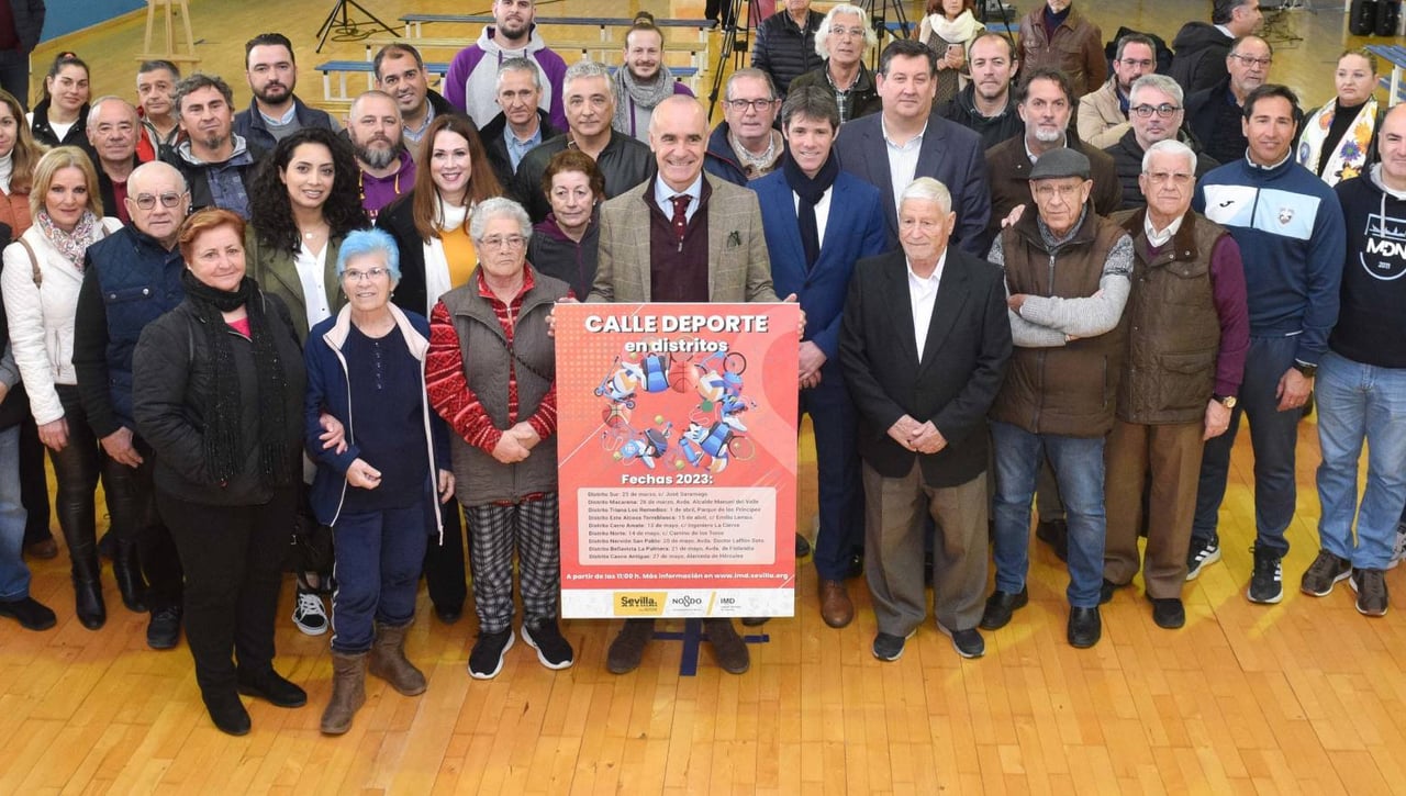 También han participado en la presentación representantes de un centenar de asociaciones de vecinos, clubes deportivos o centros educativos Club Baloncesto Aleixandre, la Delegación Sevillana de Ajedrez y el C.D. Veteranos de Rugby por parte de l Distrito IMD Triana Los Remedios; el Club Deportivo Gimnástico Sur y el CD Los Linces de Fútbol Americano por parte de Este – Alcosa - Torreblanca; el Club Remo Guadalquivir, A.D. Inter 4 y el Club Voleibol Palestra por parte del distrito IMD Macarena-Norte; el CD Sydney 2000, Shorinji Kempo Club Deportivo Sevilla Giralda y Patinaje Unity Roller por parte de Casco Antiguo; la Federación Andaluza de Baloncesto, la Escuela de Rugby Inclusivo Veteranos Sevilla y el IES Ramón Carande TSAFAD por parte de Sur; la Federación Andaluza de Tenis, representantes del nuevo deporte “Pinfuvote” y el CD Tenis de Mesa por parte de Cerro Amate; el CD Payasos Crouss, CD All Sports Bermejales y CD Patín Sevilla por parte de Bellavista - La Palmera; y el Colegio Buen Pastor y el CD Marqués de Nervión por parte de Nervión - San Pablo.