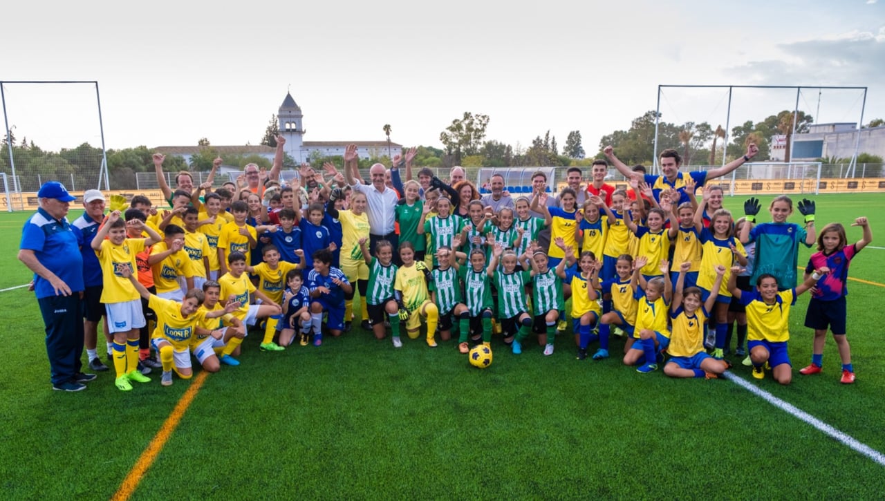El alcalde de Sevilla, Antonio Muñoz, junto al delegado de Transición Ecológica y Deportes, David Guevara, han participado este mes de octubre junto con entidades y asociaciones del Distrito Bellavista-La Palmera en la inauguración del nuevo campo de fútbol de césped artificial del Centro Deportivo Bellavista que, de esta manera, mejora sus instalaciones, donde se construirá también una pista de atletismo, que ya está en tramitación.