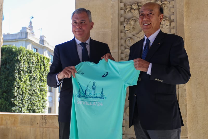 Este martes, el Ayuntamiento de Sevilla ha llevado a cabo la presentación de uno de los elementos más importantes de esta carrera que recorrerá alguno de los puntos más icónicos de la ciudad hispalense. La camiseta del Maratón de Sevilla 2024 ha sido presentada por el alcalde de Sevilla, José Luis Sanz y el acto ha contado también con la presencia de Yasuhito Hirota, CEO de Asics. El CEO de Asics se encuentra en la ciudad de Sevilla al coincidir con una visita de la delegación de la empresa japonesa a la capital de Andalucía para el acto Asics Running Light Sevilla.