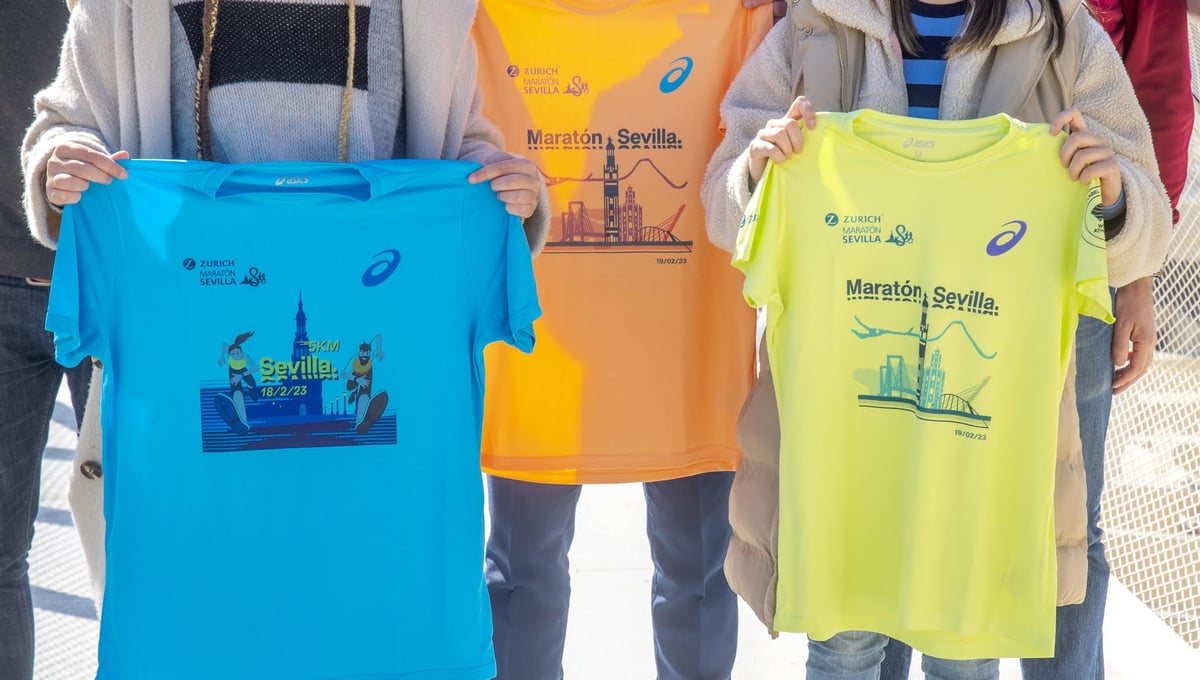 El Zurich Maratón de Sevilla 2023 ha presentado las camisetas oficiales de la prueba del próximo 19 de febrero, que representan un perfil del 'skyline' de la ciudad presidido por una reproducción artística de la Giralda y la Torre del Oro acompañadas por los puentes de la ciudad, desde el V Centenario pasando por Barqueta hasta el Alamillo, sobre la lámina azul del río Guadalquivir. Además de los logos de la casa aseguradora, principal patrocinador y protagonista del 'naming' de la prueba, y de la firma de ropa deportiva japonesa, que es la empresa responsable de la prenda como patrocinador técnico, aparece la denominación de Maratón de Sevilla con la nueva imagen corporativa de la ciudad y su proyección de sombra.