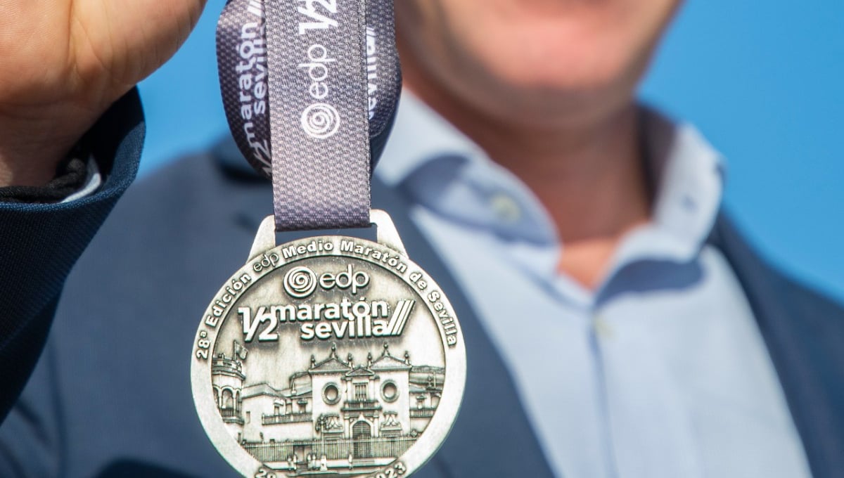 David Guevara, el delegado del Área de Transición Ecológica y Deportes del Ayuntamiento de Sevilla, ha presentado esta medalla que en su vigésimo octava edición esperará a los más de 12.000 corredores que agotaron dorsales hace más de un mes. Guevara ha destacado que “Sevilla es una ciudad del deporte por los grandes eventos que alberga como es el caso de esta EDP Medio Maratón de Sevilla, que se ha convertido en una prueba de referencia en todo el país, que bate récord de corredores en la línea de salida y que continúa impulsando la participación femenina. Esta iniciativa refuerza el posicionamiento de Sevilla como la mejor ciudad para correr con pruebas accesibles para todas y todos los corredores puesto que tanto los sevillanos como los visitantes saben que nuestros circuitos aseguran los mejores tiempos”.
