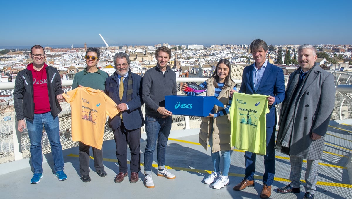 La presentación de las camisetas oficiales se ha llevado a cabo por parte del delegado de Transición Ecológica y Deportes del Ayuntamiento de Sevilla, David Guevara, junto a Javier Gavela, director técnico del Zurich Maratón de Sevilla; Sebastián Ballester, responsable de ASICS; y las diseñadoras de las camisetas del maratón y el 5K Breakfast Run, Mª Paz García y Paula Pérez.