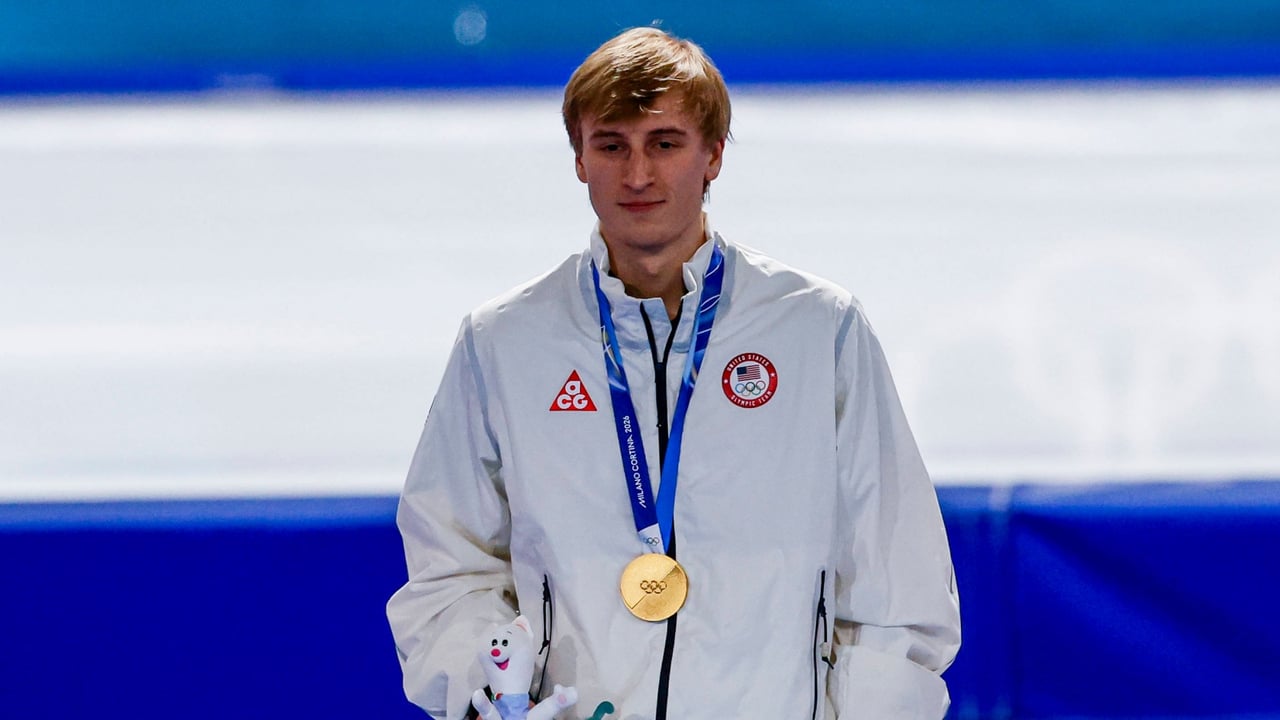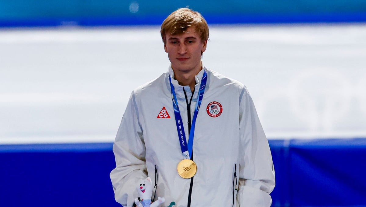Jordan Stolz, con la medalla de ora de los 500 metros en patinaje de velocidad.IMAGO