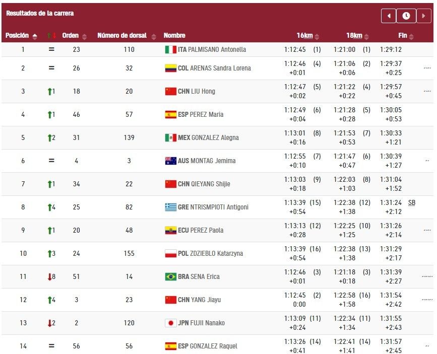 10:52 ATLETISMO - ¡Quinta! El acelerón de la italiana Palmisano va descartando rivales y María Pérez marcha quinta a falta de dos kilómetros, aunque ya tiene a diez segundos la medalla de bronce. Parece difícil, pero...