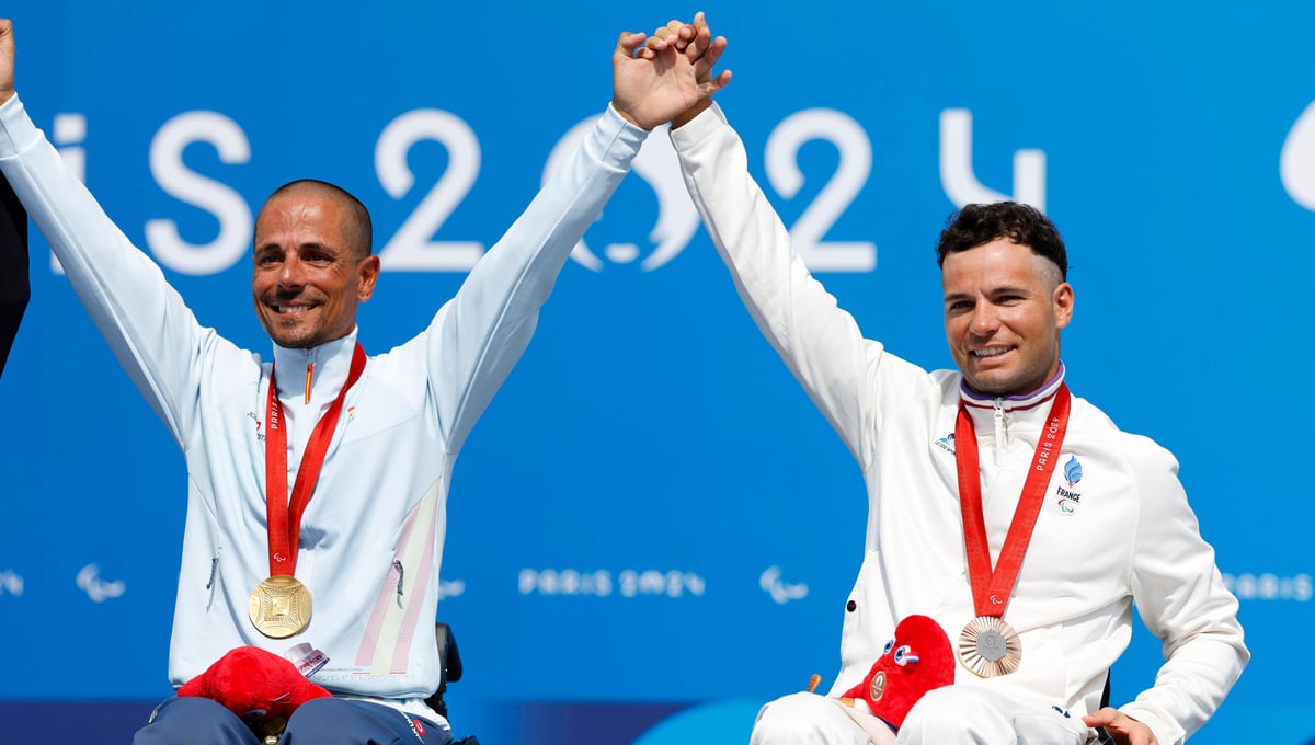 Sergio Garrote y Florian Jouanny compartiendo podio en París 2024Cordon Press
