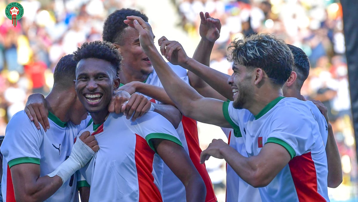 Los jugadores de Marruecos celebran uno de los goles frente a Egipto durante el partido por la medalla de bronce ante Egipto en los Juegos Olímpicos de París 2024X / @EnMaroc
