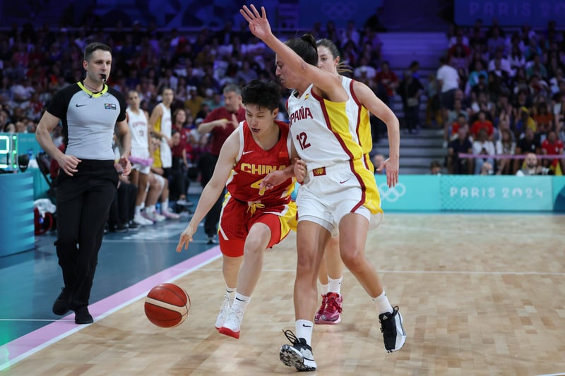 Con un 7-0 España logró acercarse en el luminoso, sin ser capaz de llegar a ponerse por delante antes del descanso (33-37). Leonor Rodríguez, con 11 puntos, fue la más destacada con España. China mejoró tras el descanso, merced al buen trabajo de Mengran Sun. Su juego interior hizo daño a España, que seguía agarrándose al partido con lo que hiciese falta. 53-59 al final del tercer cuarto.