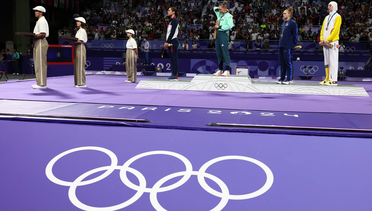 El podio de la categoría de -67 kg de taekwondo en París 2024Cordon Press