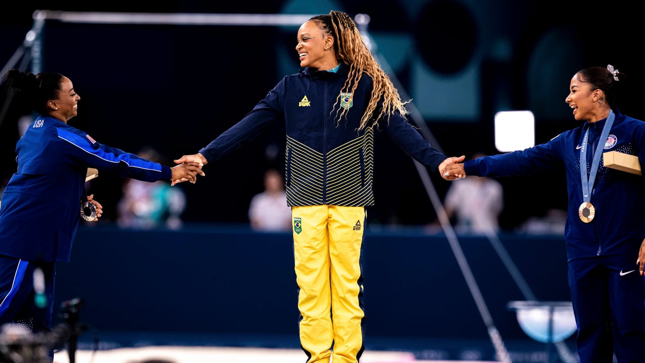 Sin embargo, Biles falló en su ejercicio y la brasileña por fin se proclamaba campeona. La estadounidense quiso reconocer a su rival y junto con su compatriota, Jordan Chiles, le rindieron un bonito homenaje, arrodillándose ante ella para destacar y acompañar con los brazos su subida al máximo escalón.