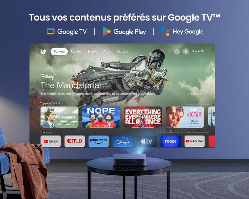 Sin embargo, el gran valor añadido del Atom de Dangbei no es sólo ese, sino que además disfruta de Google TV. Es decir, que no solo gozas de una pantalla gigante en casa para disfrutar de tus películas y programas favoritos, sino que también tienes acceso a todo el ecosistema de entretenimiento de Google directamente desde tu proyector. Por tanto, todo queda al alcance de unos clics; desde aplicaciones de streaming hasta juegos… Navegar por tus aplicaciones favoritas, ver videos en YouTube, jugar a tus juegos preferidos y hasta realizar búsquedas en internet, todo desde Google y pudiendo utilizar el Asistente de Google, por lo que la experiencia es sencilla y fluida.