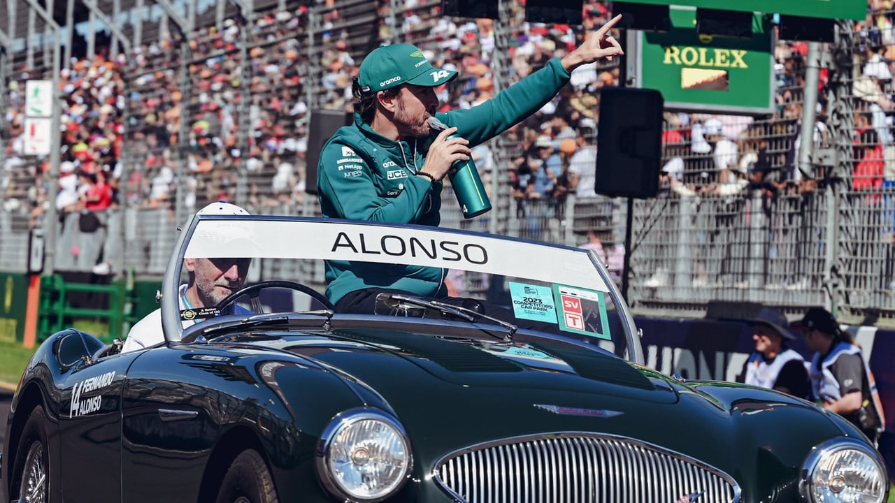 Alonso en un desfile ante sus aficionados@AstonMartinF1