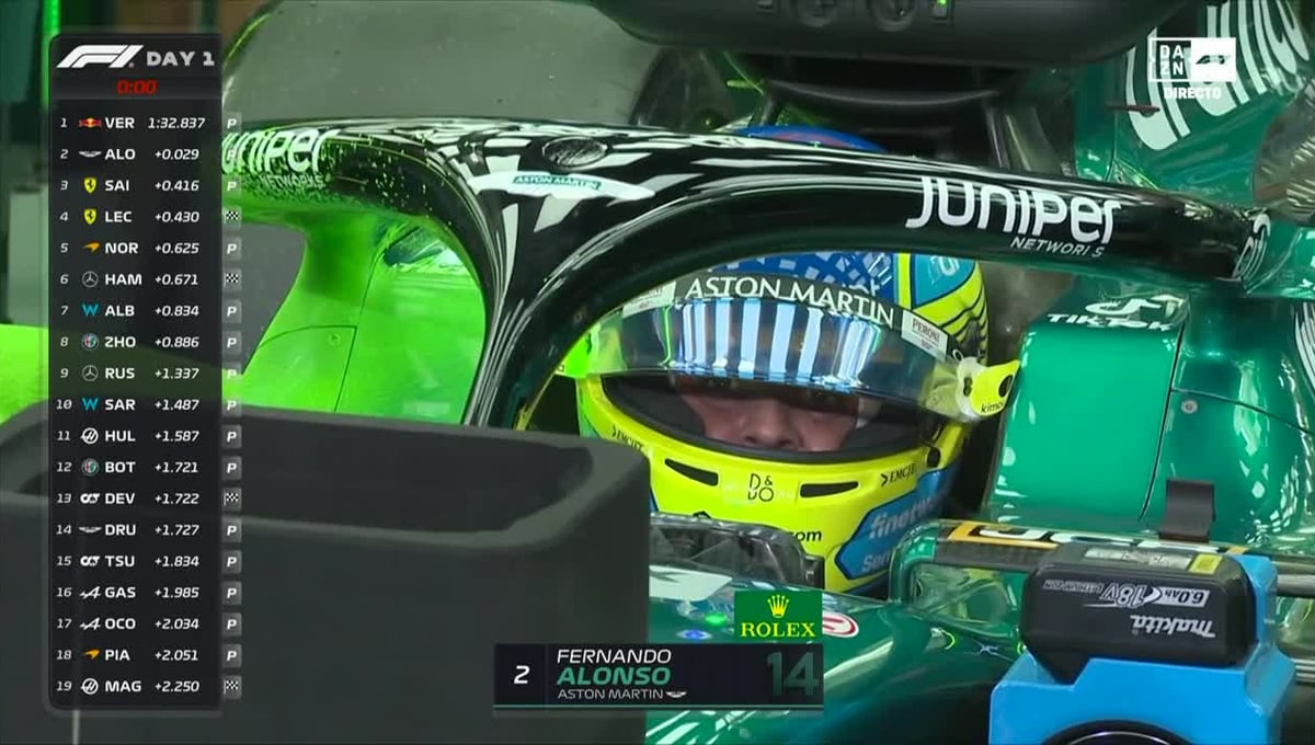 El neerlandés Max Verstappen (Red Bull), que defenderá título a partir del primer fin de semana de marzo, marcó el mejor tiempo de la primera jornada de entrenamientos de pretemporada para el Mundial de Fórmula 1, que tuvo lugar este jueves en el circuito de Sakhir, en Baréin; donde los españoles Fernando Alonso (Aston Martin) y Carlos Sainz (Ferrari) marcaron el segundo y el tercer tiempo del día, respectivamente.