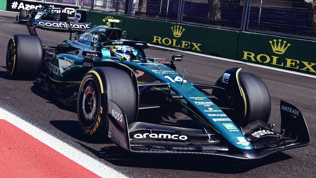El Aston Martin de Fernando Alonso no subió al podio en el GP de Azerbaiyán.@AstonMartinF1