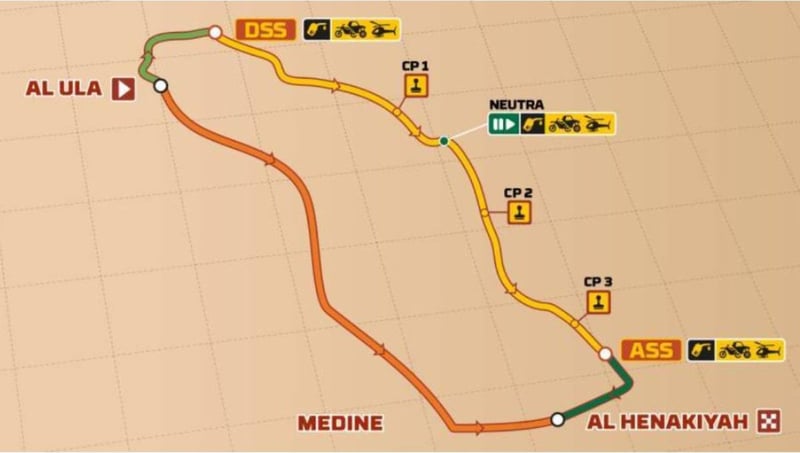 Tras una etapa prólogo del Dakar 2024 que ya dejó imágenes emocionantes, el primer triunfo español -Tosha Schareina en motos-, el error en la navegación de Carlos Sainz, la caída de Joan Barreda, el susto de Nani Roma, que casi se choca con De Villiers... el raid asiático empieza lo serio con una primera etapa entre AlUla y Al Henakiyah con 405 km de especial y 127 de enlace por el que nunca se ha pasado, por lo que se presupone que deparará sorpresas.