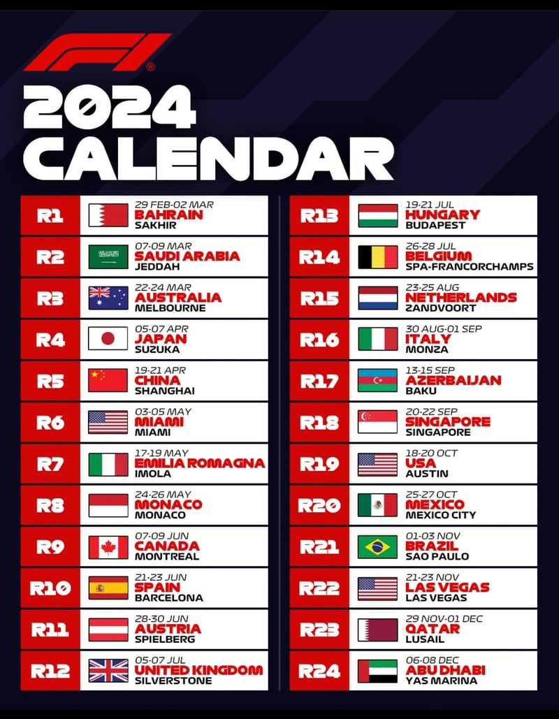 Más carreras que nunca antes. La principal novedad de este año es que habrá 24 grandes premios, lo cual se debe al retorno del GP de China, el cual no se ha celebrado en las tres últimas campañas por la pandemia de COVID y las restricciones a causa de ello.