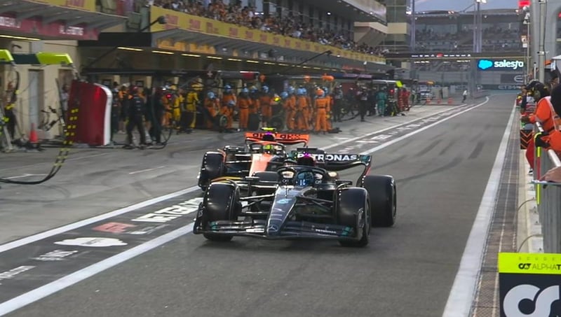 35/58 Entra Russell para evitar en 'undercut' de Norris y sale justo por delante de él. La reacción de Mercedes ha sido muy rápida.