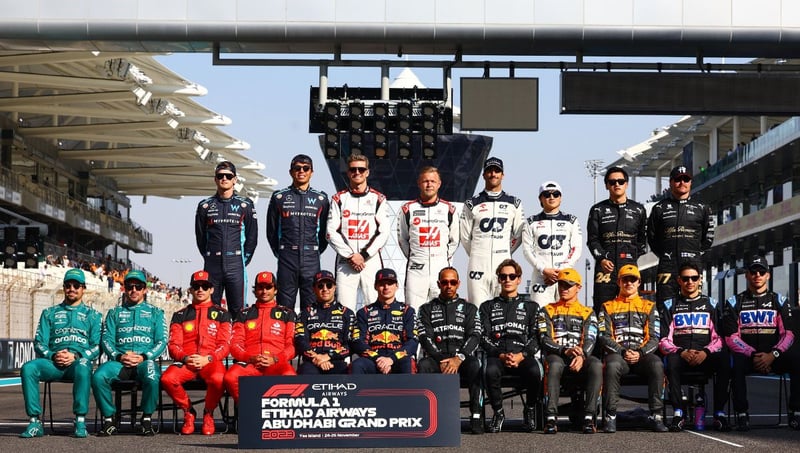 Los pilotos, como suele ser tradicional antes del último Gran Premio, han posado en Yas Marina para inmortalizar la foto de la temporada.