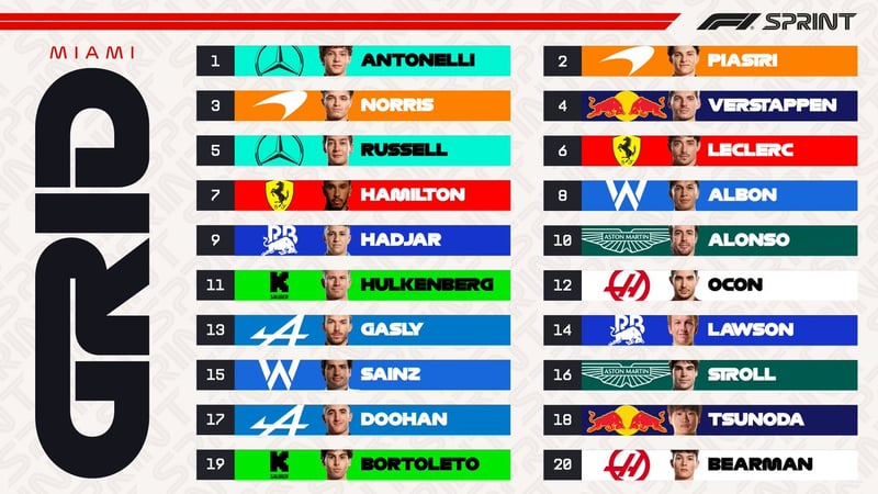 Los Grandes Premios que tiene carrera al sprint siempre son diferentes para el mundial de Fórmula 1, porque aportan muchos detalles, permiten las sorpresas, al menos de entrada y hace que todo vaya mucho más rápido. Pese a que hay quienes los aman y quienes los odian, siempre dejan algo y este fin de semana en Miami no ha sido diferente. El encargado de dar el gran golpe ha sido Andrea Kimi Antonelli, el jovencísimo 'rookie' de Mercedes ha hecho la 'mini pole' sorprendiendo a los McLaren. Además, Fernando Alonso ha hecho magia para colarse en la SQ3, mientras las cosas no han ido tan bien para Carlos Sainz, que saldrá 15º.
