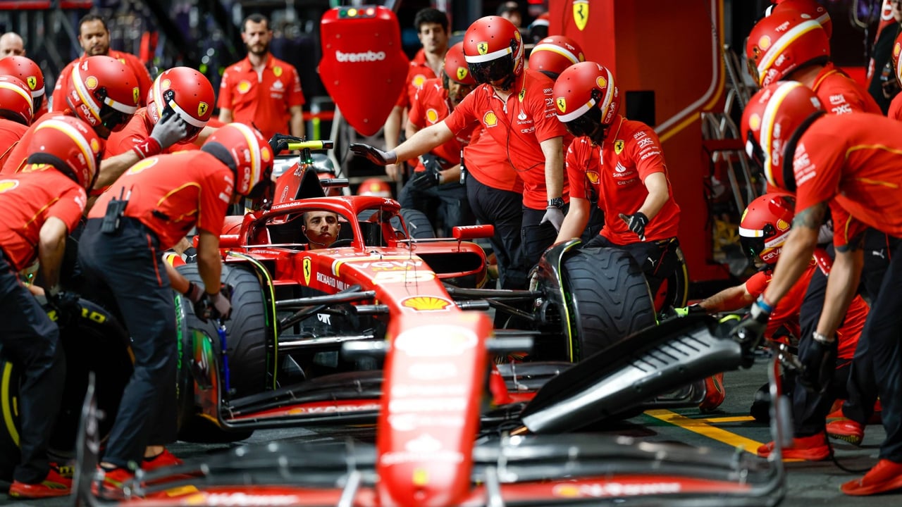 Mecánicos de Ferrari trabajando en el coche de Carlos SainzCORDON PRESS