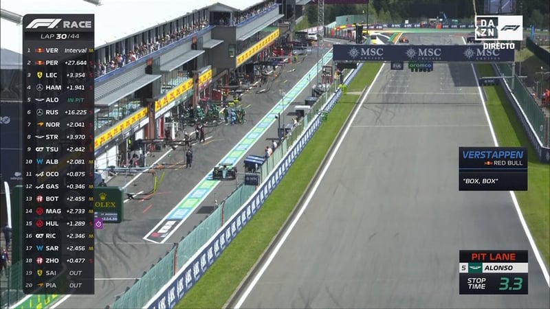 Stroll está ahora posicionado 18, solo por detrás tiene a Carlos Sainz que sigue en el circuito de Spa. Alonso quinto, cuarto Hamilton. Sin cambios en los tres primeros.