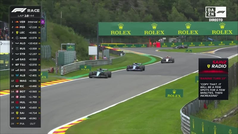 Todo el Mundial estamos cubriéndolo en ESTADIO Deportivo, con el fin de hacer llegar a los amantes del motor todo cuanto acontezca en libres, Sprint... y, por supuesto, el Gran Premio. Este mismo 30 de julio os traeremos la carrera del Gran Premio de Bélgica. Si nada se tuerce, arrancará a las 15.00 horas. Está por ver si la intensidad lluviosa que está revolucionando los radares no impide que se haga a la hora acordad. ¿Habrá retrasos? ¿Se saldrá con safety car como pasó en la sesión de la carrera al Sprint? ¿Cómo afectará el tipo de neumáticos que escojan las escuderías en este contexto?