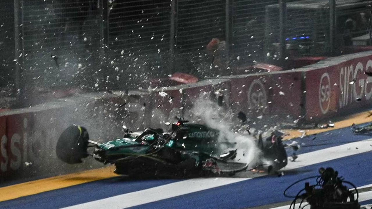 El piloto canadiense, compañero de equipo de Fernando Alonso, sufrió un aparatoso accidente en la última curva del circuito de Singapur, con grandes daños materiales que obligaron a sacar la bandera roja